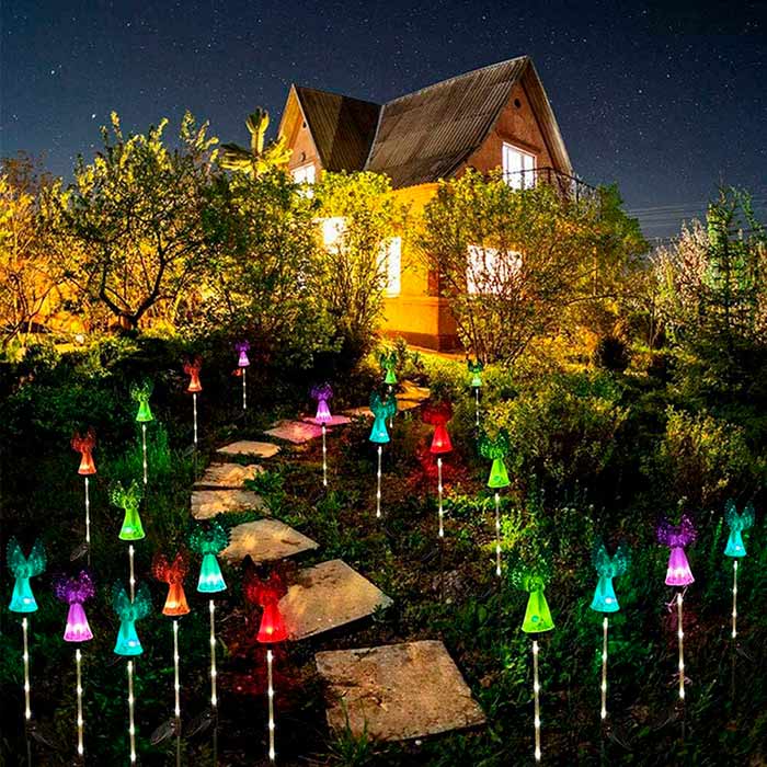 1x viacfarebná solárna lampa v tvare anjela