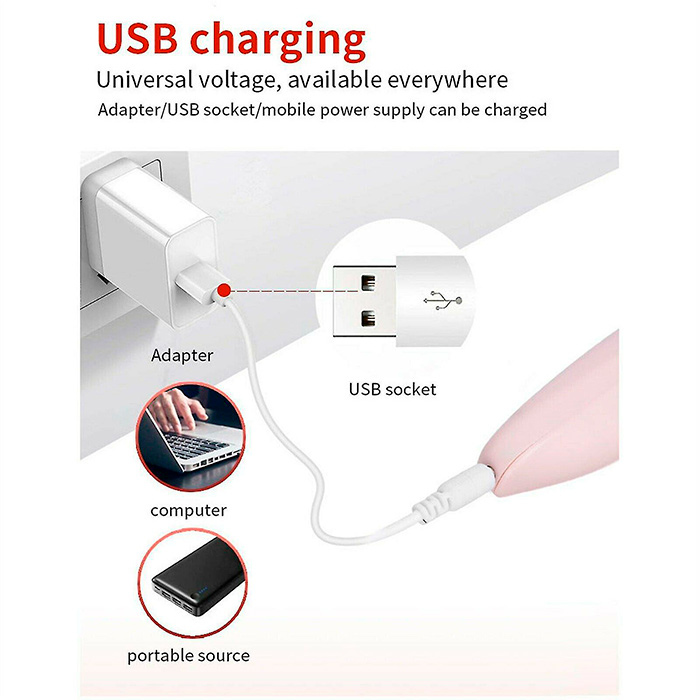 Nabite zariadenie pomocou priloženého USB kábla. Na zariadenie umiestnite valec a zapnite ho tlačidlom. Valec môžete používať podľa potreby, ale odporúča sa najprv použiť hrubší na odstránenie odumretej kože a potom ho vymeniť za jemnejší na dokončenie.