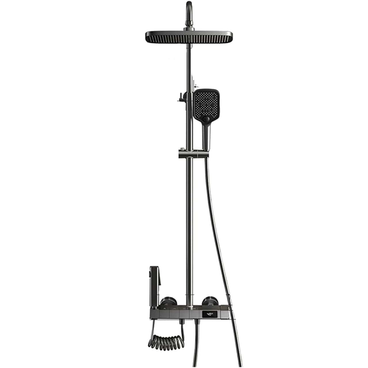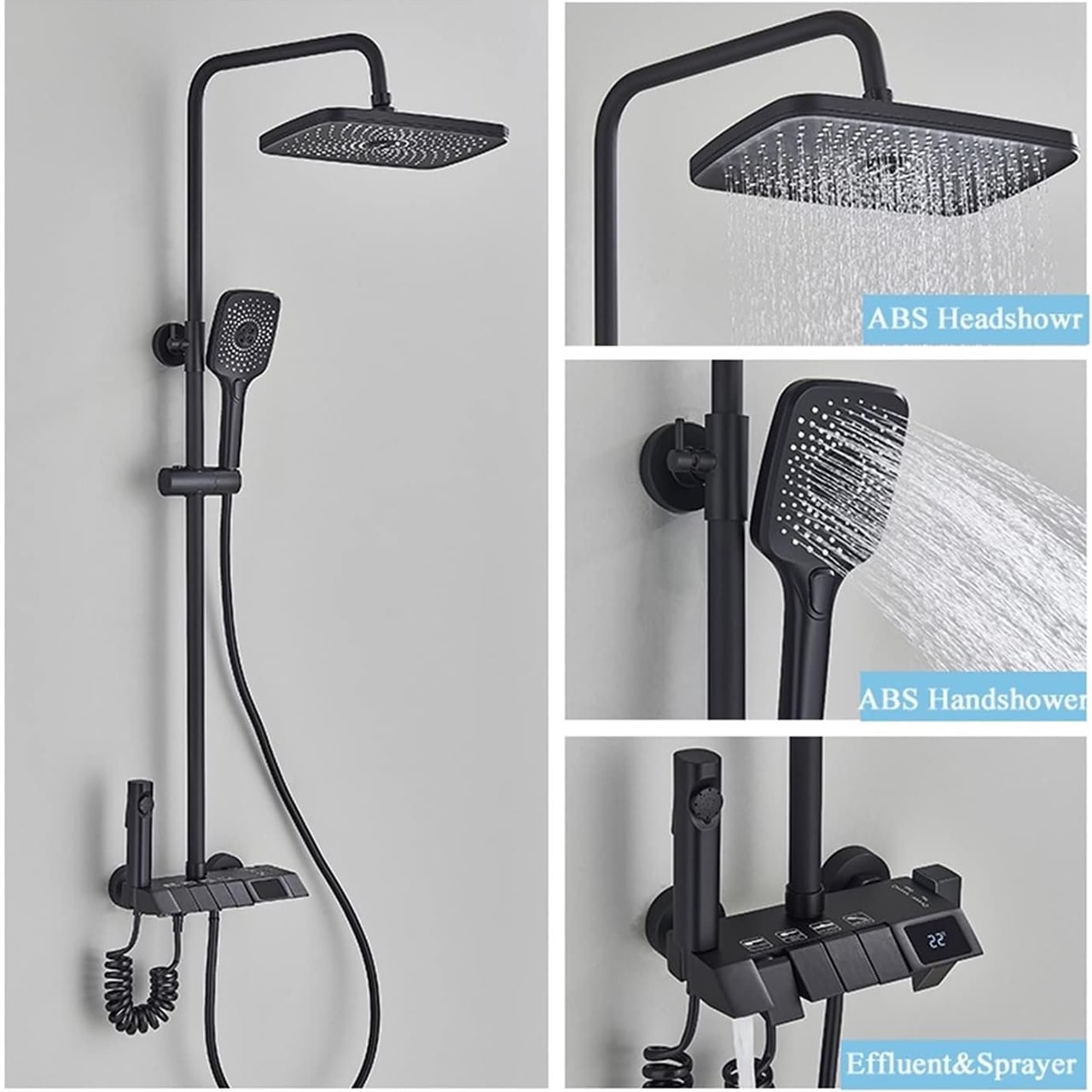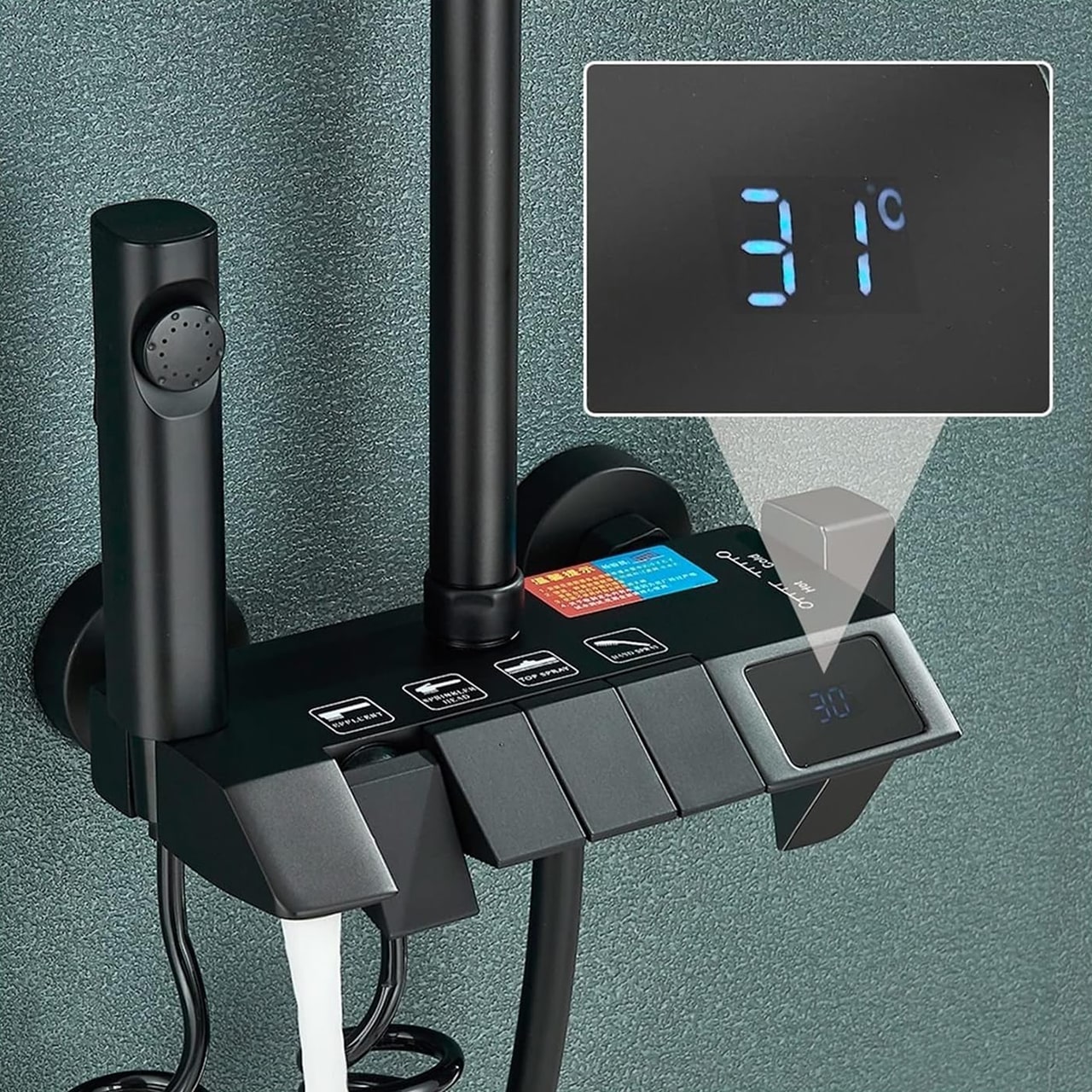 Odporúčame, aby sprchovú súpravu nainštaloval vhodný dodávateľ, napr. inštalatér. Uistite sa, že máte potrebné náradie na inštaláciu (kľúč, skrutkovač, Teflonová páska). Vyberte vhodné miesto v kúpeľni na inštaláciu sprchovej tyče. Použite poskytnuté skrutky a držiaky na upevnenie tyče na stenu. Uistite sa, že je tyč pevne upevnená a že je možné ju nastaviť na výšku. Priskrutkujte sprchovú hlavicu na vrch tyče. Uistite sa, že je bezpečne upevnená a že nie sú žiadne úniky vody. Pripojte držiak ručnej sprchy na požadovanú výšku tyče. Pripojte ručnú sprchu a postrekovač pomocou poskytnutých hadíc. Uistite sa, že všetky spoje sú tesné a že nie sú žiadne úniky. Pripojte digitálny LED displej k tyči a pripojte ho k hlavnému vodovodnému prívodu. Uistite sa, že všetky elektrické pripojenia sú bezpečné a že displej je správne pripojený. Otvorte hlavný vodovodný ventil a skontrolujte, či voda prúdi cez všetky pripojenia bez únikov. Nastavte výšku sprchovej tyče podľa svojich potrieb.