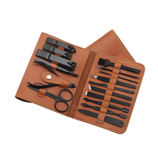 | Pomôcky pre manikúru: | 2x klieštiky na nechty: na strihanie nechtov, 1 x pilník na nechty: hladké a zaoblené nechty, 1x vidlička na odumretú kožu: ostrihajte nechty, pľuzgiere, odumretú kožu atď., 2x objstranná pomôcka na čistenie nechtov: odstaňovanie nečistôt za nechtami, zatláčanie nechtovej kožičky a odstraňovanie starého laku na nechty, 1x kefka na čistenie pomôcok |