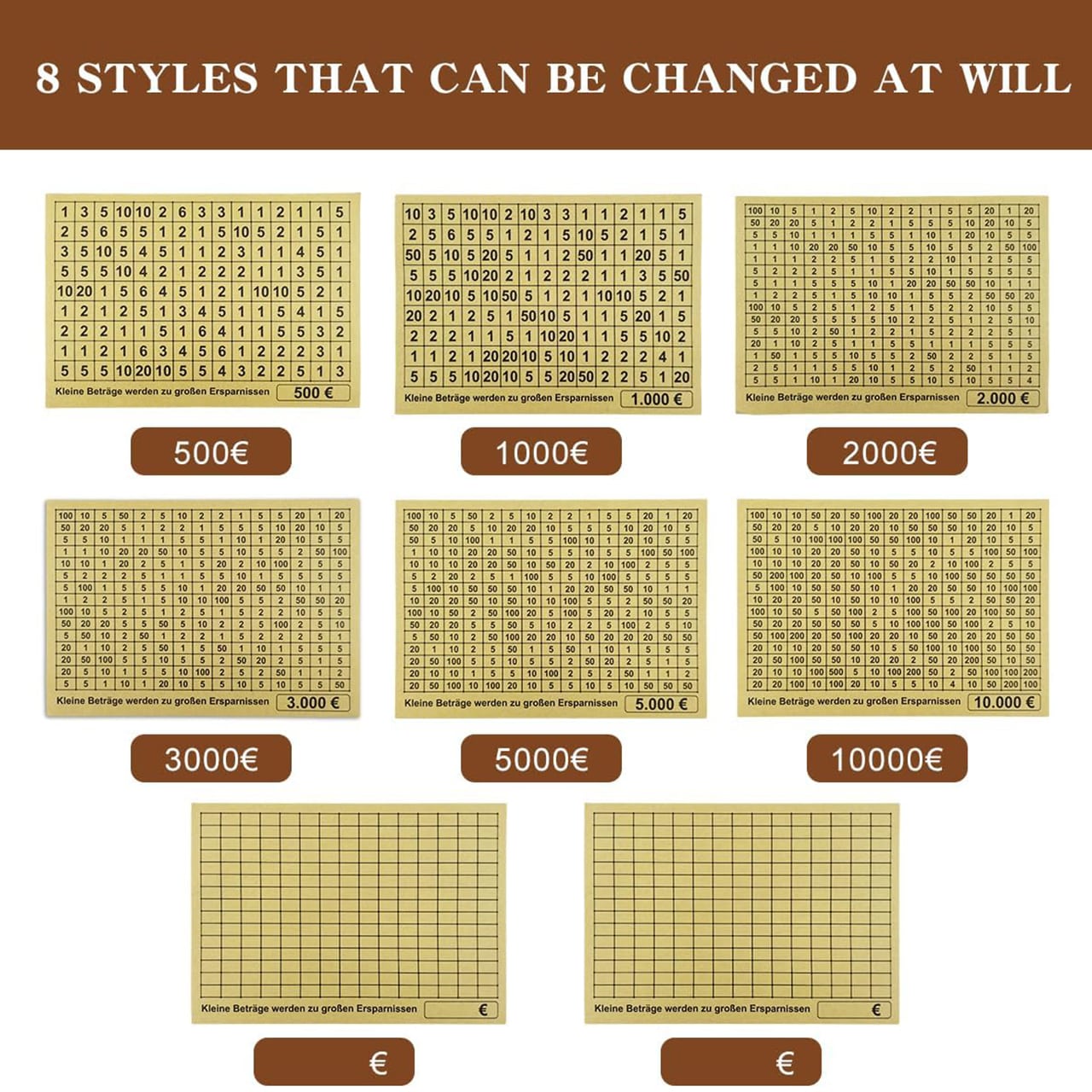 Sheets, set 8 kariet s rôznymi sumami pre GoalSaver